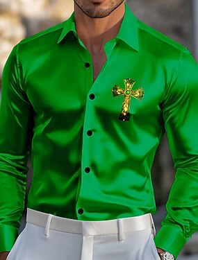 Camisa de Seda Cruzada do Dia de São Patrício Camisa de Dress Camisa de Botão de Manga Longa Moda Casual Feriado Verão Primavera Camisas de Gola Redonda Impresso em 3D Preta Branca Verde