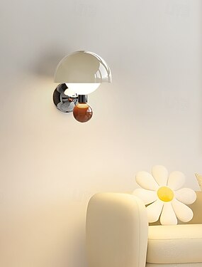 Luminária de parede LED nórdica contemporânea em formato de cogumelo, com estrutura de ferro e cúpula em PE, ideal para sala de estar.