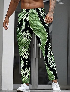 Homens 3D impressão Pele de Serpente Social Calças Calças de Terno Cintura Média Casual Ao ar livre Calças retas com bolsos Primavera Outono Impressão 3D Azul Verde Cinzento