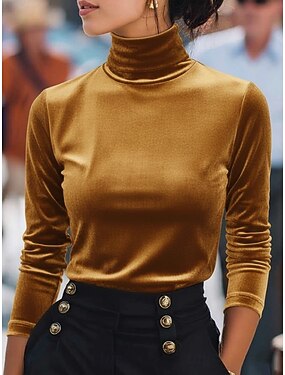Mulheres Camisetas Imprimir Em Camadas Côr Sólida Gráfico Elegante Vintage Moda Manga Longa Gola Alta Tops regulares Diário Para Noite Final de semana Vinho Azul Real Roxo Dourado Verde Outono Inverno