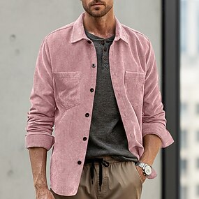 Homens Camisa Social Camisa casual Camiseta de Veludo camisa de botão Tecido Diário Férias Azul Preto Amarelo Rosa Manga Longa Colarinho Primavera & Outono Roupa Bolso frontal