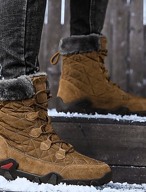 Botas de inverno masculinas de camurça bege com forro de pele – calçados quentes e duráveis para aventuras na neve e atividades de férias ao ar livre