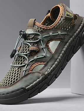 Tênis de caminhada masculino em couro sintético verde – tênis respiráveis para atividades ao ar livre, confortáveis para trekking e aventuras.