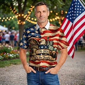 250º Aniversário EUA Blusa / Camisa Geométrico Retro Vintage Casual Anos 70 para Homens Adulto Outras Impressões para Dia da Independência 4 de julho Festa