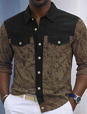 Homens Camisa Social Camisa casual Camiseta de Veludo camisa de botão Camisa de carga Caqui Verde Tropa Cinzento Manga Longa Respingo de tinta Colarinho de Camisa Casual Diário Patchwork Roupa