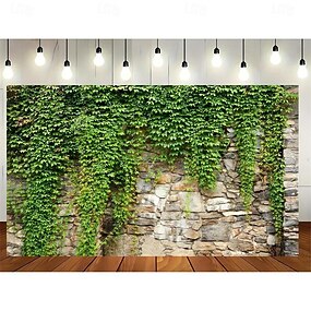 1 peça folhas de jardim primavera caindo plantas hortícolas grunge parede de pedra verde folhas e galhos cobrindo fundo de foto de arquitetura vintage