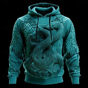 Homens Dragão 3D Moletom Legal Festa Manga Longa Gola Redonda Streetwear Bandagem Azul Amarelo Vermelho Cinzento Com Cordão Outono Inverno Designer S M L XL XXL XXXL