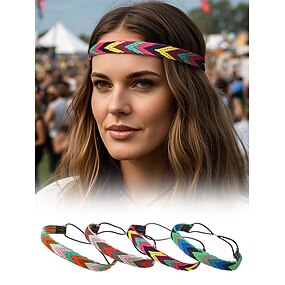 faixa de cabeça trançada feminina boho - acessório de cabelo elástico feito à mão para festival, estilo hippie colorido, perfeito para eventos musicais e uso casual