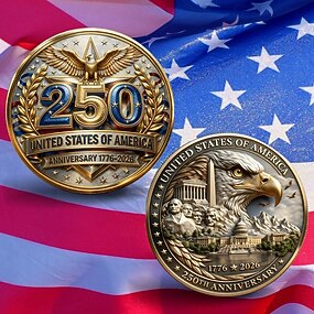 Moeda comemorativa do 250º aniversário dos EUA, apresentando majestosas águias e a marca dos 250 anos, celebrando a liberdade americana. Item colecionável.
