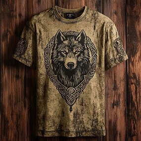 Homens Camisetas Camisa de manga curta T-shirt Manga Curta Gola Redonda Verão Outono Gráfico Moda Designer Retro Vintage Imprimir Férias Rua Para Noite Castanho Escuro Marron Café Top Tee para Homens