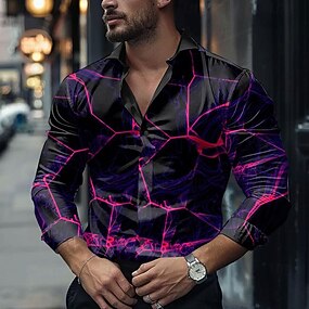 Homens Geométrica Linha Pólo Manga Curta Camisas polo Camisas de colarinho Business casual Ao ar livre Roupa Esportiva Roupa Diária Impressão 3D Botões Verão Azul Roxo Verde