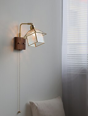 Luminária de parede moderna com interruptor de cordão, luminária de cabeceira interna, base e27, abajur de vidro quadrado, luminária de parede para quarto, sala de estar, metal, corpo da lâmpada