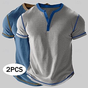 Homens Camisa Henley Camisa 100% algodão com lavagem ácida Manga Curta Henley Verão Primavera Outono Tecido Retro Vintage Casual Estilo vintage Lavado Casual Azul Claro Castanho Escuro Preto Top Tee