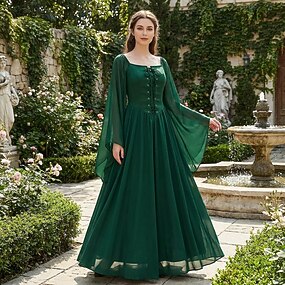 Medieval Renascentista chique Até o Tornozelo Vestidos Manga Comprida Fada Corpete Côr Sólida Fantasia Mulheres Fantasia Dia Das Bruxas Carnaval Baile de Máscaras feira renascentista Festa Temática