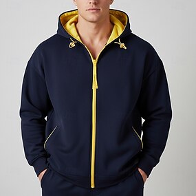 Homens Moletom Full Zip Hoodie Moletom de lã Preto Branco Vinho Azul Marinha Azul Real Com Capuz Tecido Zíper Bolsos Desportos e Ar livre Diário Feriado Poliéster Roupa de rua Legal Casual Primavera