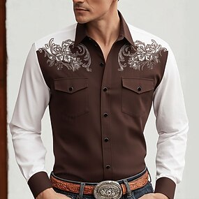 Homens Estampado Cashemere Estampa floral Étnico Camisa Social camisa ocidental Camisa de caubói Manga Longa Vintage retrô Casual Ao ar livre Roupa de Trabalho Primavera Outono Aberto para a Lateral