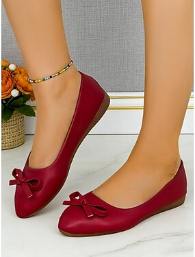 Sapatilhas vermelhas femininas com laço – sapatilhas confortáveis e elegantes para uso diário, no escritório e para ir ao trabalho.