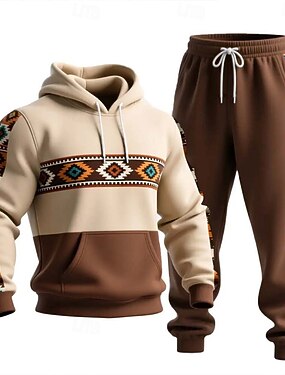 Homens Tribal 2pcs Conjuntos de moletom 3D Moletom com capuz Manga Longa Calças compridas Com Capuz Estilo Étnico Casual Diário Roupa Esportiva Impressão 3D Primavera Outono Inverno Marron