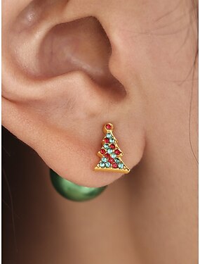 brincos de árvore de natal – brincos de cristal verde brilhante com detalhes de estrela e pérola para mulheres