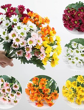 Conjunto de 5 crisântemos artificiais de 7 pétalas, resistentes aos raios UV, ideais para decoração de casa, escritório, hotel, casamento, jardim, pátio, peitoril da janela e mesa de jantar.
