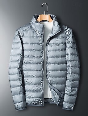 Homens Casaco de inverno Baixa Casaco puffer Jaqueta acolchoada Bolsos 50% de pato branco Férias Roupa Diária Encontro Padrão Moda Casual Confortável Térmico / Quente Outono Inverno Cor Sólida