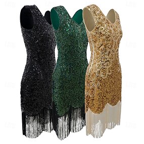 Loucos anos 20 Anos 20 Até os Joelhos Vestido melindroso O Grande Gatsby Menina melindrosa Paetês Franja Decote V Fantasia Mulheres Natal Carnaval Festa de Noite bar clandestino Mascarilha Adulto