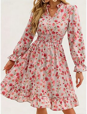 Mulheres Vestido no Joelho Vestido A Line Vestido floral Elegante Moda Moderno Diário Ao ar livre Férias Normal Floral Manga Longa Decote V Azul Amarelo Rosa Primavera Outono
