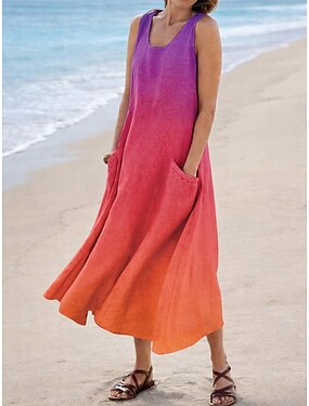 Mulheres Vestido midi Vestidos Para o Verão Vestido A Line Férias Casual Boho Feriado Normal Gráfico Cores Gradiente Sem Manga Decote V Azul Roxo Laranja Verde Verão Primavera