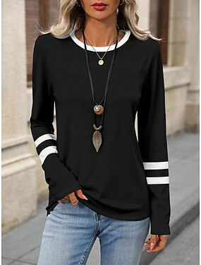Mulheres Camiseta Imprimir Gráfico Listrado Moda à moda Clássico Manga Longa Gola Redonda Decote Redondo Tops regulares Diário Final de semana Preto Verão Primavera Outono
