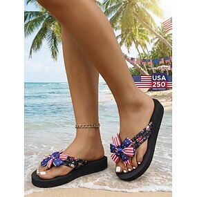 Chinelo feminino comemorativo do 250º aniversário dos EUA – sandálias de praia com estampa floral e laço da bandeira americana, perfeitas para o 4 de julho e férias. & verão