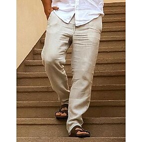 Homens Calças de linho Calças Social Calça verão Calças Plissadas Bolso frontal Perna reta Multi-pack Tecido Conforto Respirável Comprimento total Ao ar livre Casual Diário Férias Moda Green + Gray