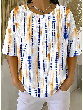 Mulheres Camiseta Waffle Tops tricotados texturizados Gráfico Geométrica à moda Clássico Meia Manga Gola Redonda Tops regulares Casual Diário Azul Roxo Laranja Verde Verão Primavera