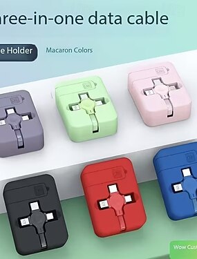 Kit com 2 cabos de carregamento retráteis 3 em 1 com suporte para celular, cabo carregador USB múltiplo para iPhone, tipo C, micro USB, cores vibrantes, cabo de carregamento portátil e sem emaranhados
