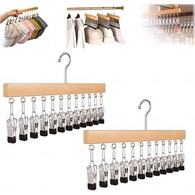Organizador de armário com 2 unidades e 12 prendedores, organizador de armário suspenso que economiza espaço, prendedores de roupa para chapéus, cachecóis, calças jeans, saias, meias e outras peças,