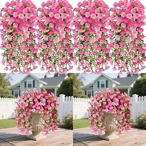 Conjunto de 8 flores artificiais de ipomeia rosa para pendurar, em plástico resistente, ideais para decoração de varandas, casamentos, Natal, Ação de Graças e Páscoa - para uso o ano todo.