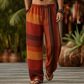 Homens Geométrica Listrado Calças Calças largas Calça casual Cintura Média Moda Casa Ao ar livre Férias Cintura elástica com cordão Calças de linho com bolsos Verão Primavera Impressão 3D Azul Rosa