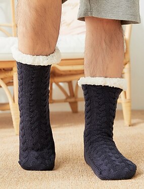 Meias de inverno masculinas de lã polar, grossas e quentes, antiderrapantes, para uso doméstico interno.