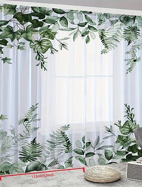 Cortinas de janela minimalistas nórdicas com estampa floral botânica, conjunto de 2 painéis, em poliéster com bolso para varão, ideais para decoração de quarto, sala de estar e presentes de Natal.