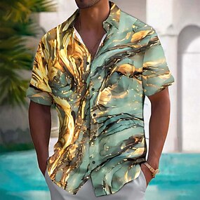 Homens Mármore Arte Líquida Abstrata Bloqueio de cores Camisa Social camisa de verão camisa de botão Manga Curta Moda Casual Ao ar livre Férias Dia a Dia Verão Primavera Aberto para a Lateral