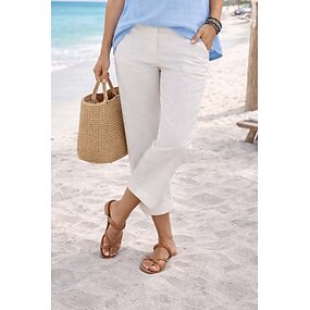 Mulheres calções capri Mistura de Algodão chinês Calça verão Moda Comprimento da panturrilha Natural Tecido Bolsos laterais Folgado Conforto Sem Elasticidade Casual / Diário Azul Preto Branco Vermelho