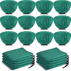 Conjunto de 12 capas protetoras de inverno para plantas, ideais para proteção contra geadas, para arbustos, árvores e roseiras. Mede 39,4 x 23,6 polegadas (aproximadamente 100 x 60 cm) e possui cordão