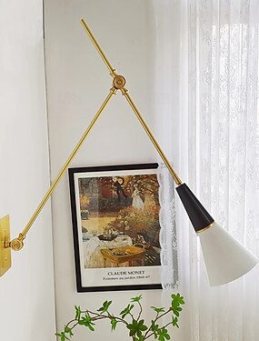 Aplique de parede contemporâneo escandinavo com cúpula cônica em latão e alumínio, com 1 lâmpada, para quarto.