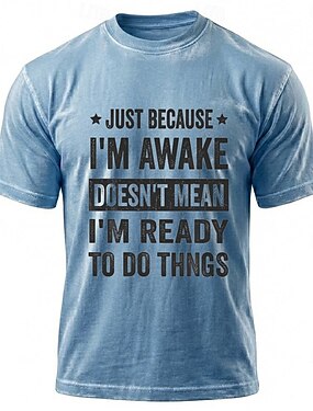 Camiseta Masculina Gráfica Engraçada "Só porque eu estou acordado não significa que estou pronto para fazer coisas" Slogan Humorístico de Estilo de Vida