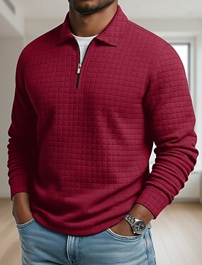 Homens Camisas Polo Waffle Textura Casual Ao ar livre Com Zíper Quarter Zip Manga Longa Moda Moderno Côr Sólida Textura Zip Up Primavera & Outono Todas as Estações Normal Preto Branco Vinho Azul