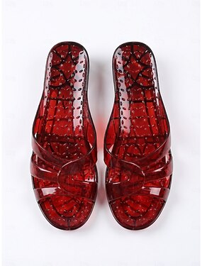 Sandálias femininas vermelhas de plástico - chinelos de praia impermeáveis vintage retrô anos 2000 com sola texturizada para férias tropicais, relaxar à beira da piscina e brincar na areia no verão.