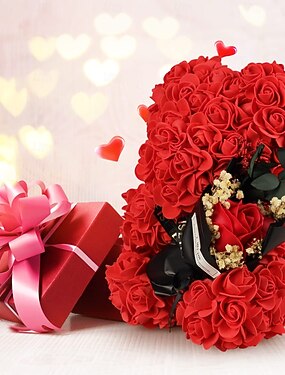 flores artificiais de espuma de urso rosa com luz LED e caixa de presente de plástico - presente romântico perfeito para o dia das mães, aniversário, casamento, aniversário, ação de graças e natal 25 cm/10 polegadas