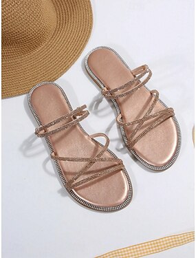 sandálias femininas de tiras douradas com corrente no tornozelo - calçados casuais elegantes e confortáveis para o verão, praia e férias