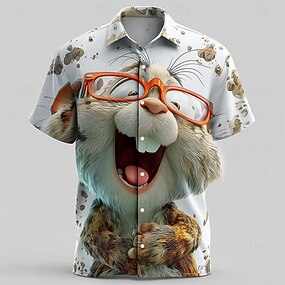 Homens Animal Desenho Animado Coelho Camisa Social camisa de verão camisa de botão Manga Curta Engraçado Ao ar livre Férias Dia a Dia Verão Primavera Aberto para a Lateral Impressão 3D camisas de