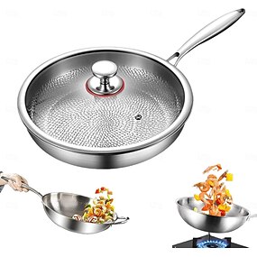 frigideiras antiaderentes multifuncionais ultra-duráveis e resistentes a riscos, frigideiras de titânio marteladas pro com tampa para cozinhar na cozinha