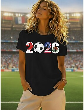 Mulheres Camiseta T-shirt Imprimir Gráfico Futebol Americano Letra à moda Clássico Casual Manga Curta Gola Redonda Tops regulares Diário Esportes Para Noite Preto Branco Amarelo Rosa Verde Verão